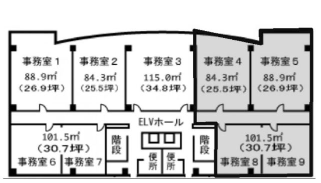 | 7階 | 4/5/8/9 区画 | 91坪(300.82㎡) |