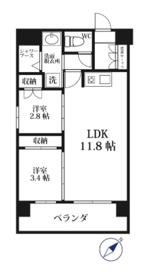 | 3階 | 302 号室 | 12.93坪(42.74㎡) |